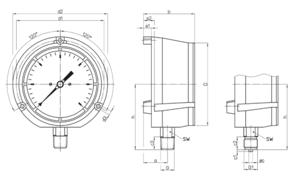 Blow-out back; when pressure increases in the case, the entire case back separates, allowing full relief