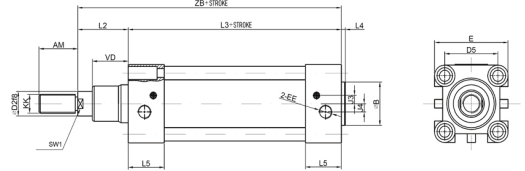 • Cushioning system reduces the noise caused by the impact of the piston on the end covers (standard)